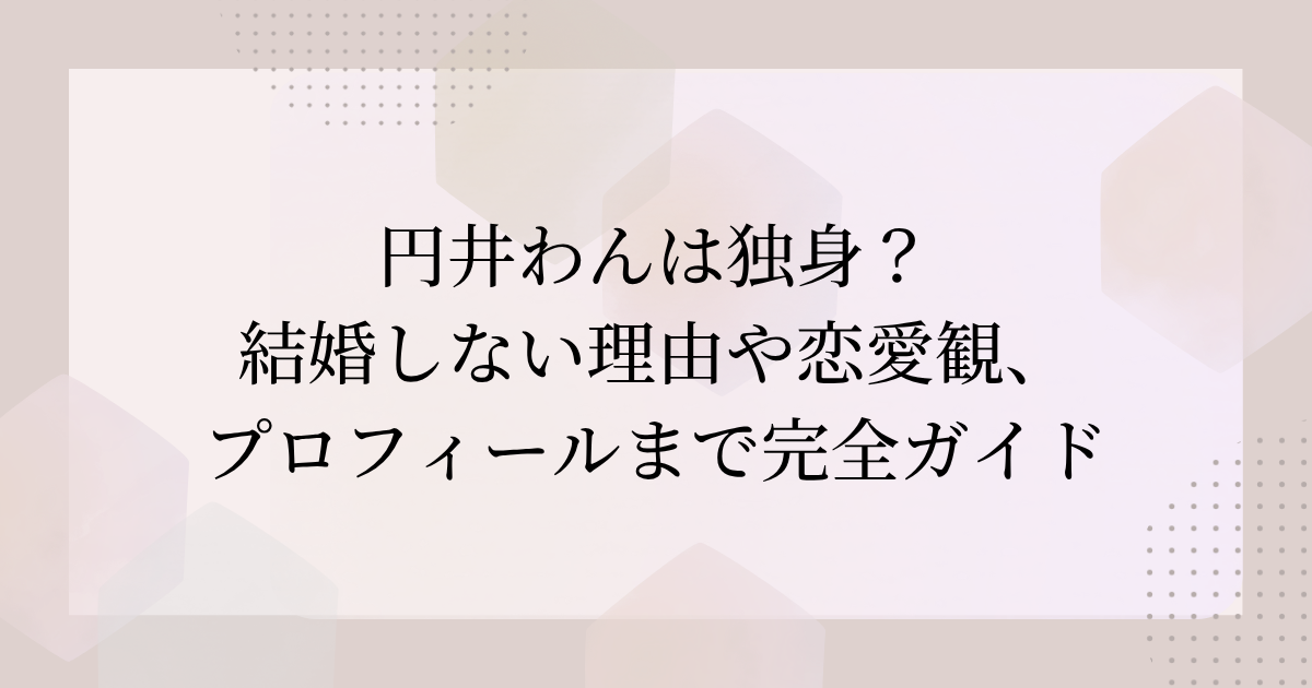 本記事では、円井わんさんの結婚の有無や独身を選ぶ理由、プロフィール情報について詳しく解説していきます。