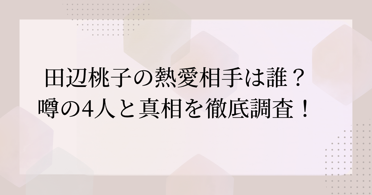 この記事では、田辺桃子さんの熱愛の噂の真相から、田辺桃子さんが明かした理想の彼氏像、仕事と恋愛に対する考え方まで、詳しく解説していきます。田辺桃子さんのプライベートな一面を知りたい方は、ぜひ最後までお読みください。